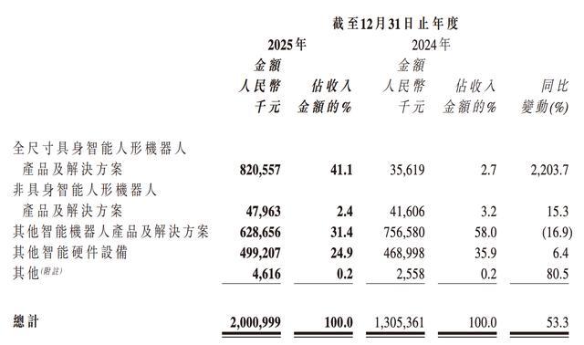 换句话说,2025年公司整体营收的增长,完全依靠人形机器人单一业务线拉动。